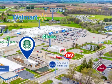 Square Footage 2,511 Cap Rate 6.38% LTR 10 years Year Built 2025 Net Lease Retail | Restaurants Starbucks Caro, MI $2,500,000